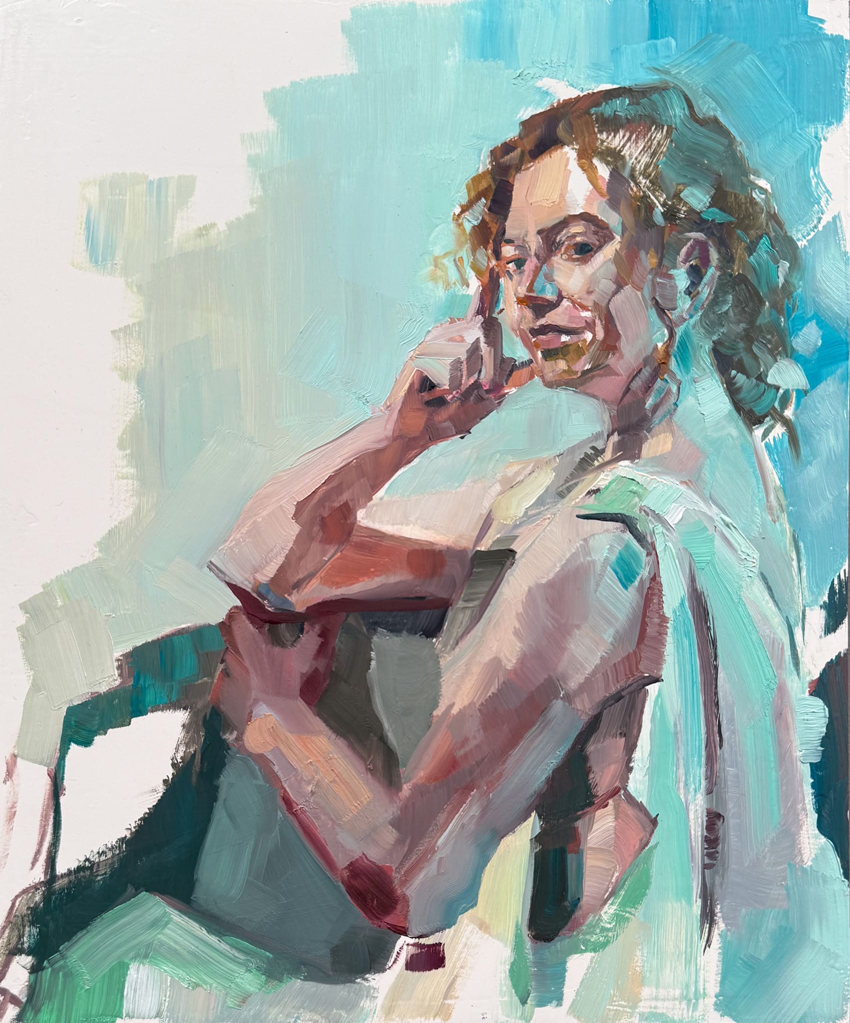 The “Unfinished” portraits and landscapes are works of decisive brush work, color with a purpose, and omitting the unnecessary. While “finished paintings” often give the viewer all the information, they tend to give too much information, leaving the viewer’s imagination little to add to the painting. With an unfinished look, the collaboration between the artist and the viewer becomes paramount and a story can unfold in between the painter’s brush marks. Unfinished is the equivalent of a literary cliffhanger. When the imagination has room to play, the painting becomes more personal.